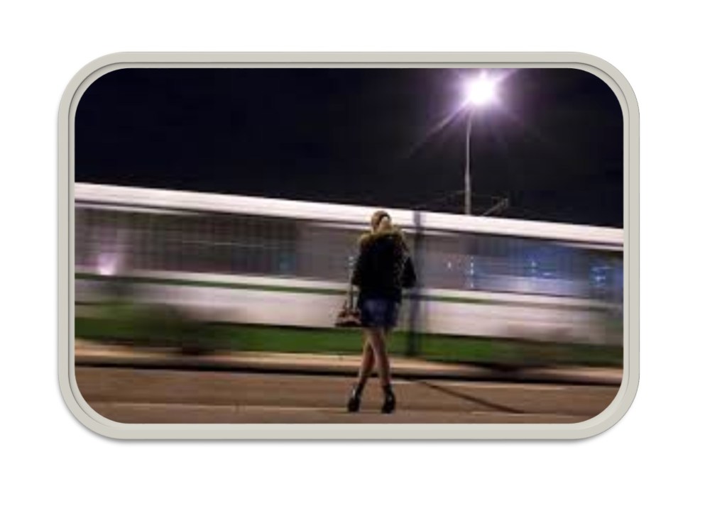 Dis ’n stil aand. Die meeste treine het al ingekom en lê oor vir die nag. Die stasiepersoneel op nagskof is binne die kantoor besig. ‘n Sekuriteitswag beweeg op en af tussen die treine. Sy los hom uit; dan los hy haar uit. Aandlug en stof speel rondom elke spreilig op die perron. Die stasie raak stiller en sy besef sy gaan vanaand geduldig moet wees. Wag en kyk wat gebeur.